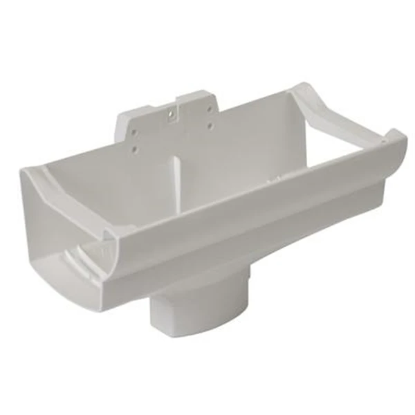 - Raccord central à placer entre des profilés de gouttière à coller Ovation LG28 et un tube de descente ovoïde de 90×56 mm.