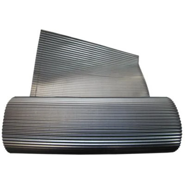 Bande de plomb plissé, naturel, destiné aux travaux d’étanchéité en couverture.