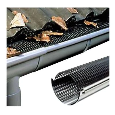 Tube semi-ouvert, en polyéthylène quadrillé de couleur noire, se glissant entre les tuiles et le fond de la gouttière, sans déplacer celles-ci, empêchant ainsi toute obstruction des descentes d’eau par des feuilles ou des brindilles.
