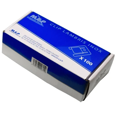Boite de 100 clips de dimensions 37,5 x 32 x 0,8 mm