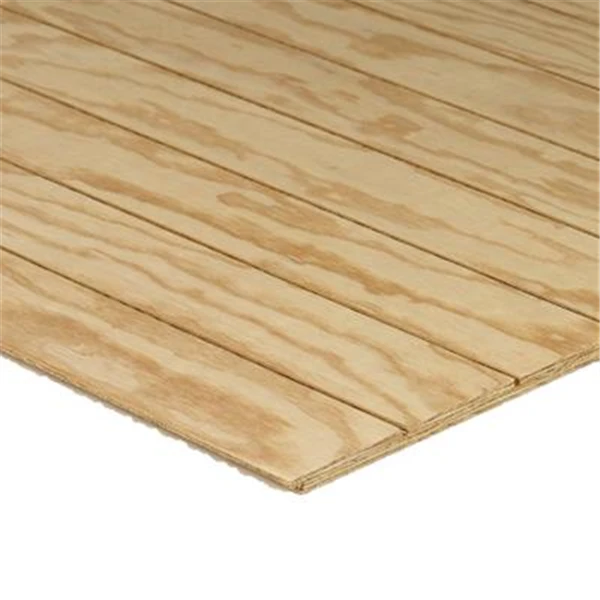 Contreplaqué en pin maritime rainuré en U sur une face façon lambris (les 2 faces sont poncées) – 2 rives longues usinées mi-bois.